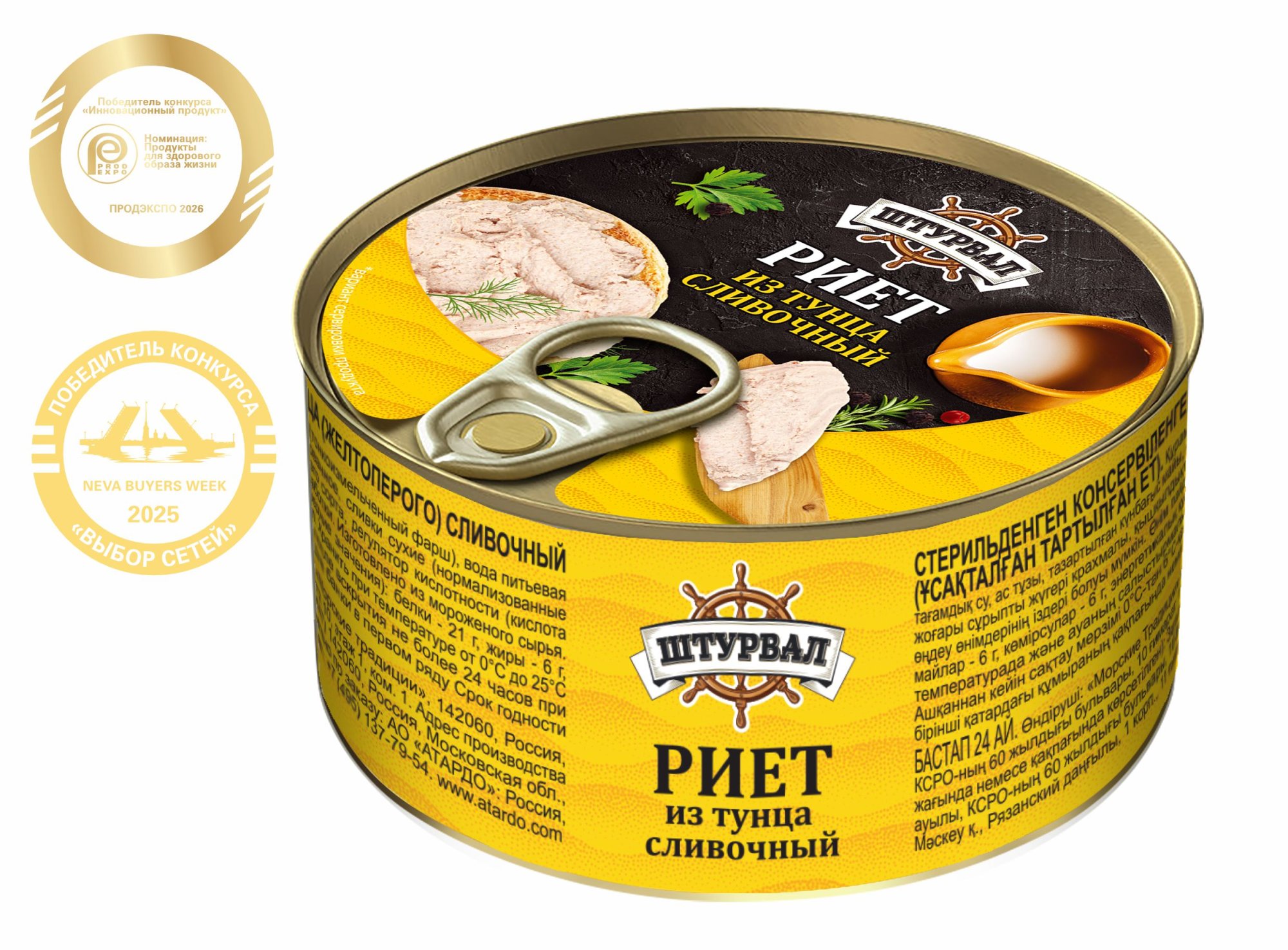 Состав: филе тунца, вода питьевая очищенная, соль пищевая, масло подсолнечное рафинированное, молоко сухое обезжиренное, крахмал кукурузный в/с, кислота уксусная.