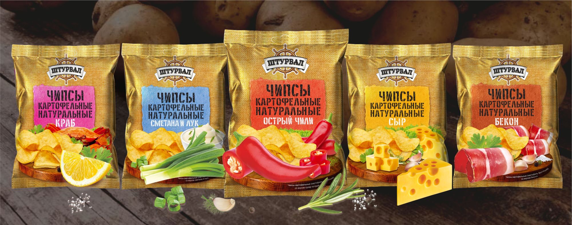 Картофельные чипсы «Штурвал» доступны в двух видах упаковки: 70 г. (24 шт.) и 150 г. (16 шт.) для удобства покупателей.