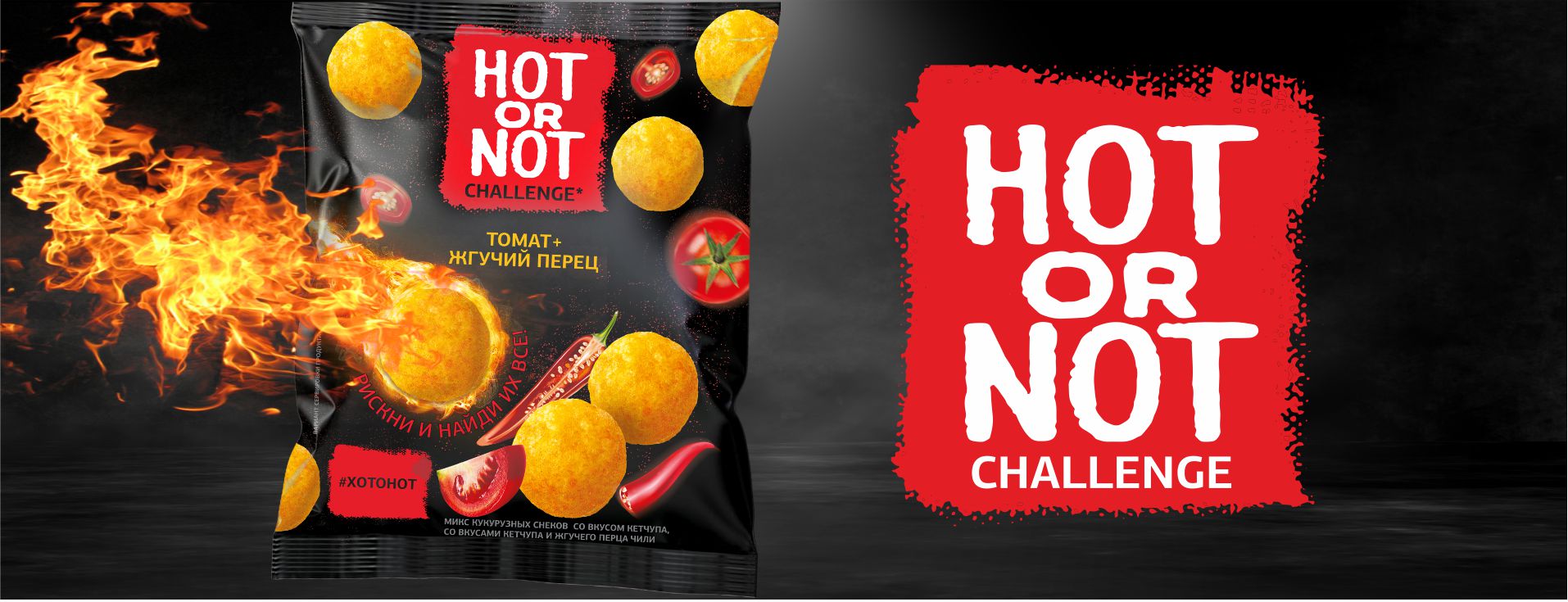Это азартная игра для смелых! Хрустящий микс кукурузных шариков: большинство из них с томатом и всего несколько имеют вкус жгучего перца чили. Таким образом, ты никогда не узнаешь, будет ли тот шарик, который ты достанешь острым или нет (HOT OR NOT). Рискни и попробуй их все!